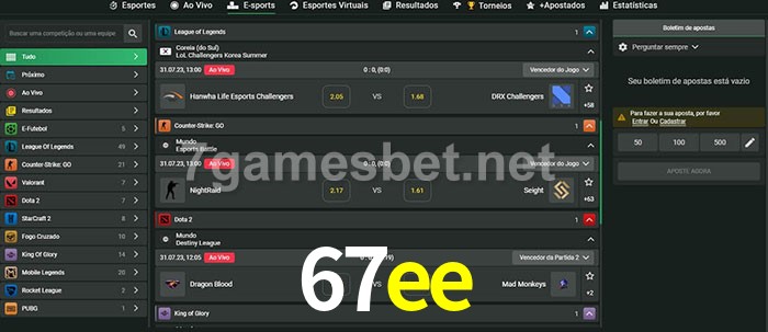 A aposta 67ee oferece aos jogadores a experiência mais conveniente de apostas em eSports!